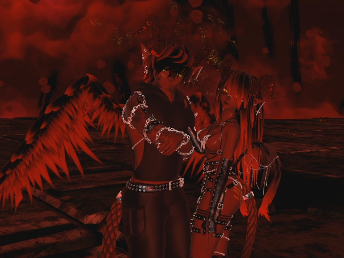 Toggleable: Harness, chain, shirt, pants, shoes, horns, tail, wings, demon skin